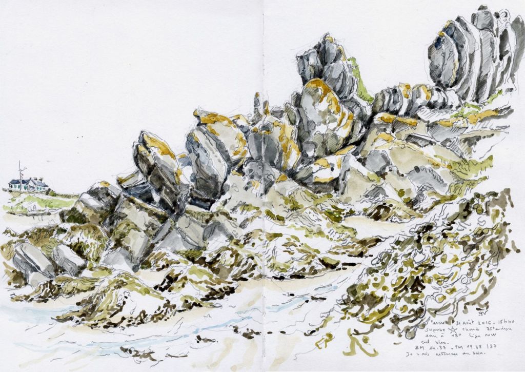 Même s’il lui arrive de s’aventurer en Bretagne, en Asie, de naviguer loin au Nord, à bord des voiliers Aztec-Lady ou Spirit of Conrad, le lien avec Chausey est si fort qu’il revient toujours remplir ses carnets sur l’île ainsi qu’à Granville, son port d’attache.
