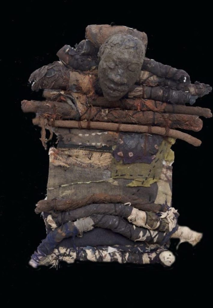 également nos Djinns du désert, des sculptures-figurines, des esprits du Sahara, en fondant et en façonnant du plastique trouvé, et en cousant les textiles, les lambeaux de tissus.